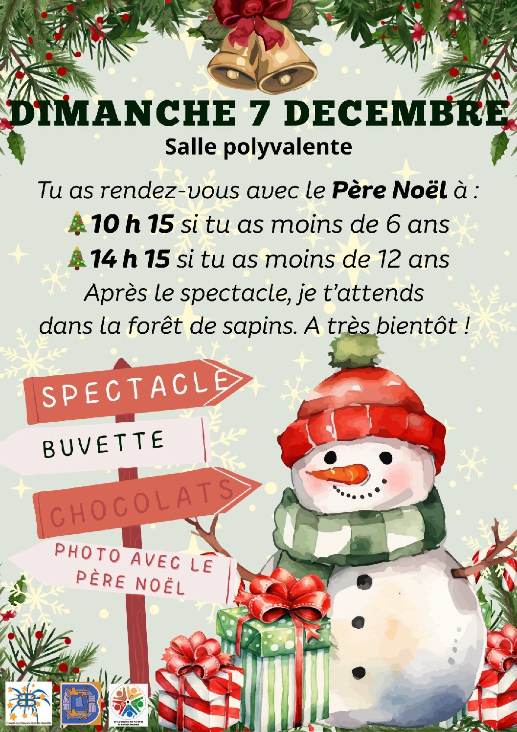 Dimanche 7 décembre, tous les enfants de la commune sont invités à rencontrer le Père Noël à l’issue d’un spectacle et d’un goûter.